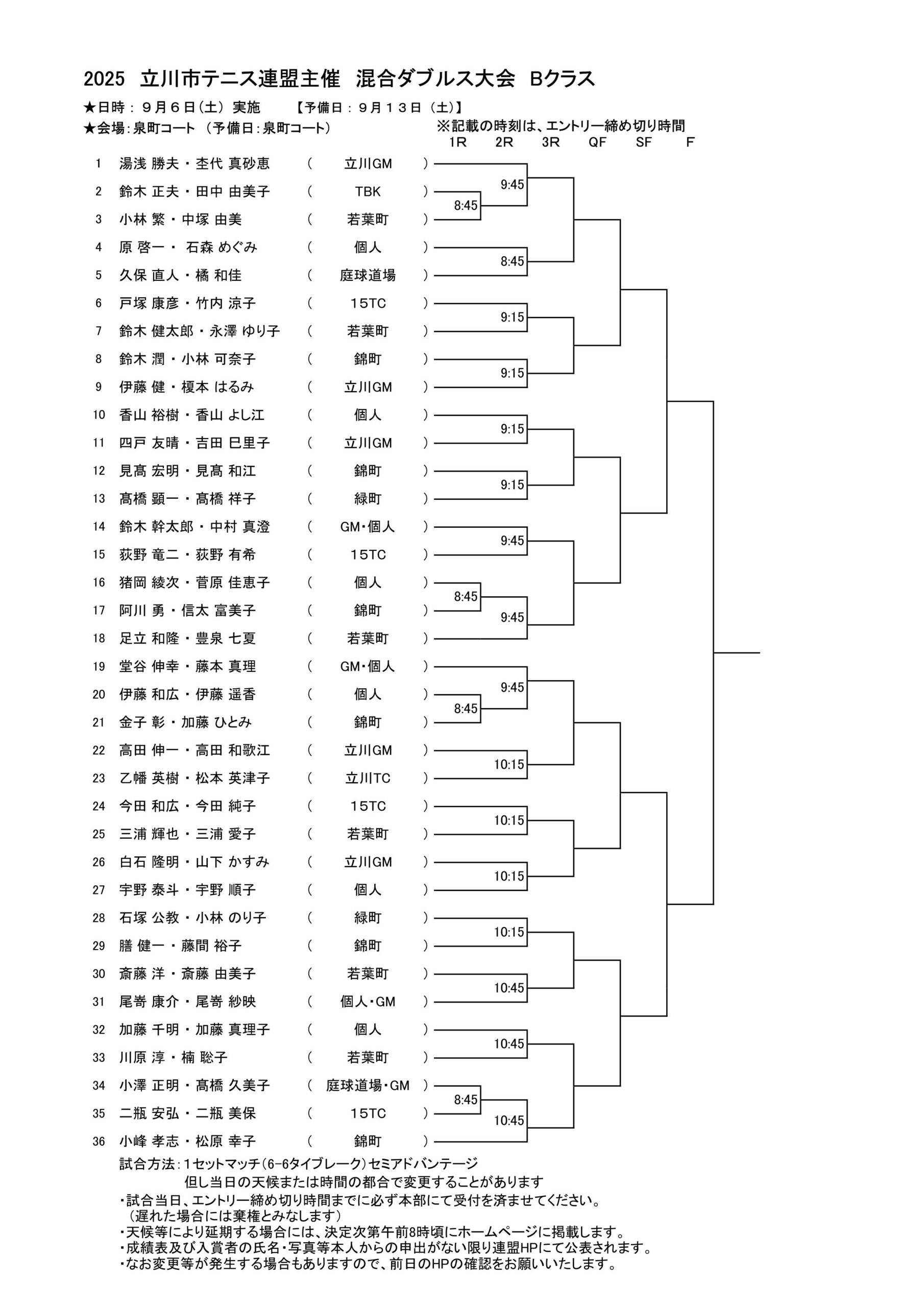 ・2025年度混合ダブルス大会クラスドロー